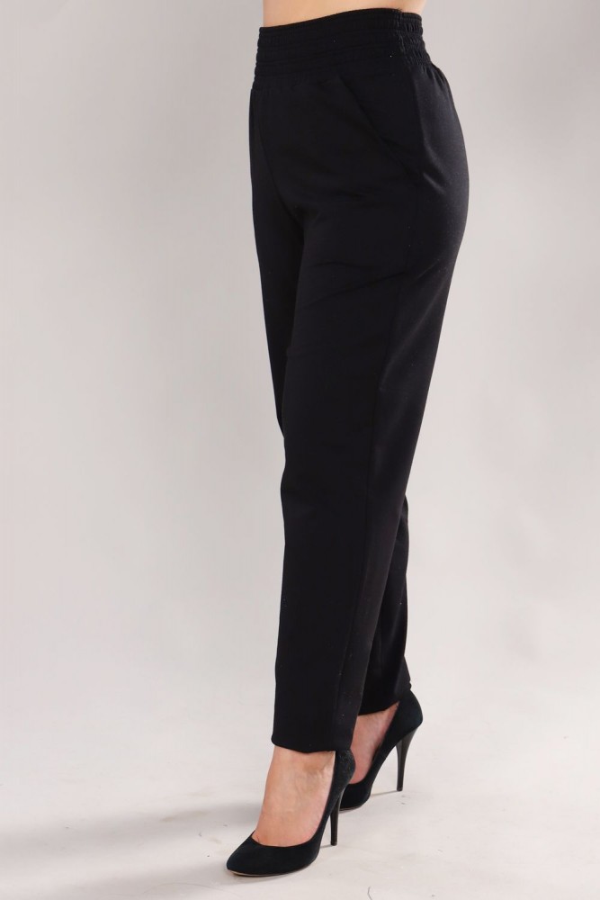 Классические женские брюки из футера выполнены на широком поясе-резинке, который как скрывает все недостатки, так и подчёркивает достоинства фигуры. Для удобства изделие дополнено боковыми карманами. Данная модель будет радовать Вас своим комфортом и практичностью в повседневном гардеробе.