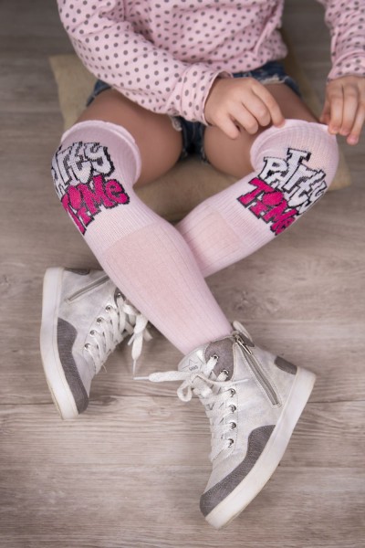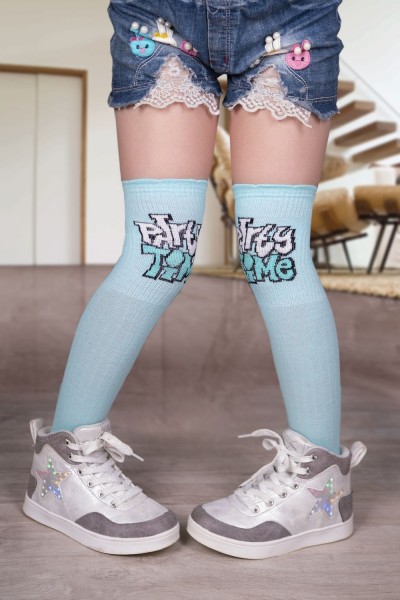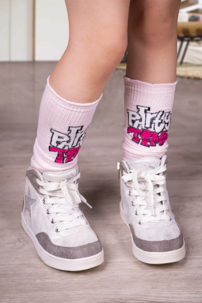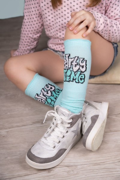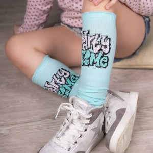 Яркие гольфы для девочек. Сверху вывязана надпись Party Time. В упаковке 2 пары - по 1 парке каждой расцветки