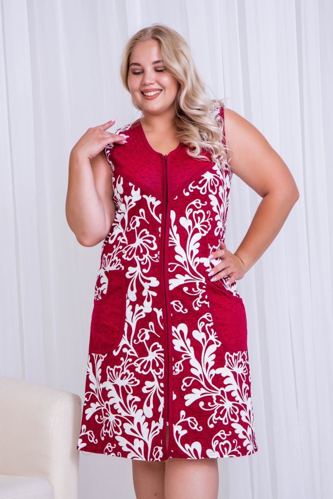 Удобный и практичный халат без рукавов. Застежка на молнию, оригинальный крой полочки. Отлично подходит для лета.