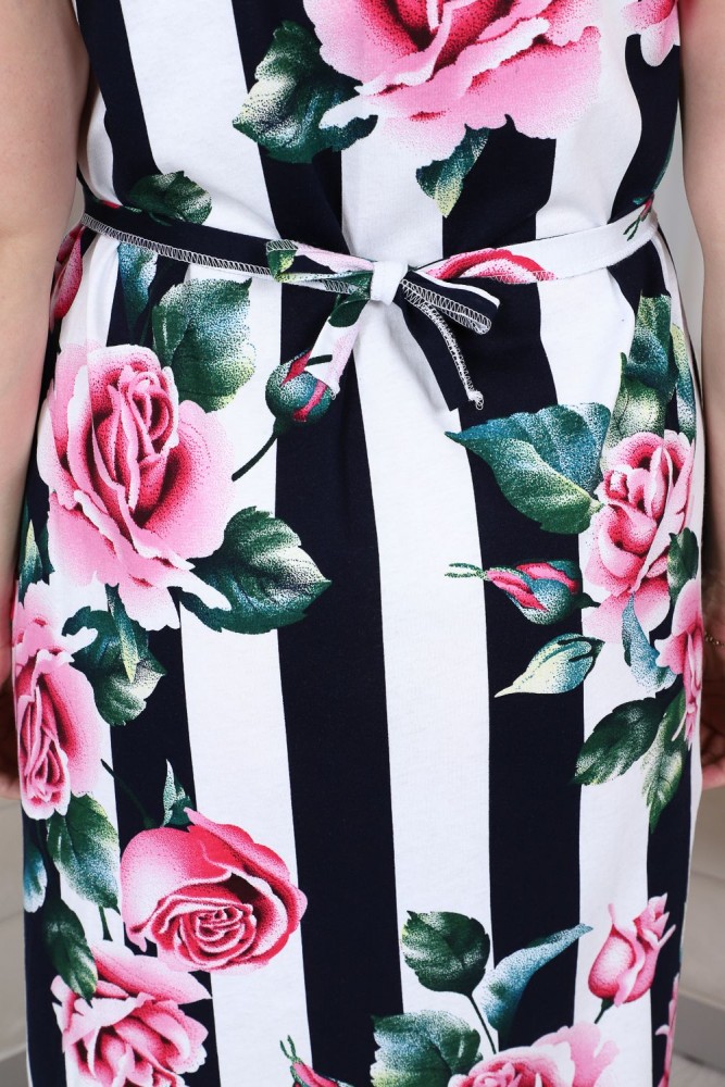 Женский халат средней длины, V-образный вырез горловины, по бокам фигурные вставки черного цвета, визуально корректирующие фигуру