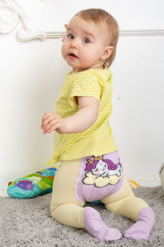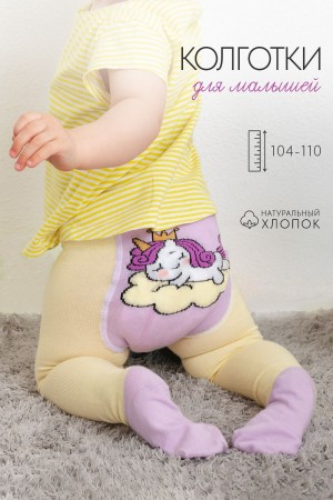 Очаровательные колготки для малышей. Снизу - имитация носочка с рисунком в виде глазок, сзади вывязан спящий единорог.