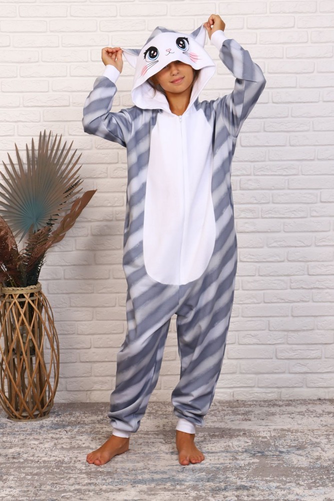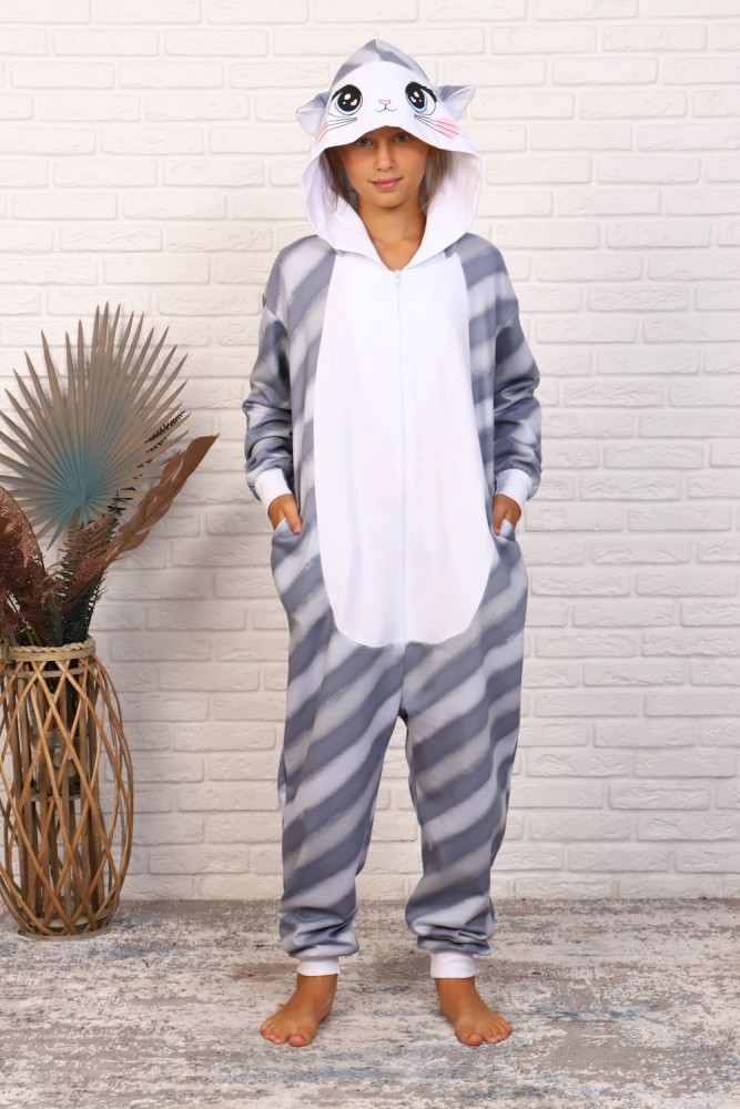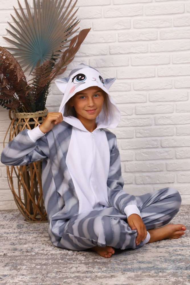 Комбинезон-кигуруми "Кошечка" выполнен из футера с начесом (100% хлопок). Это лучший выбор для крутой вечеринки, повседневной одежды и даже для сна. Комбинезон изготовлен из теплого материала, который легко стирается, не линяет, не теряет цвет и классно выглядит в течение долгого времени. Застегивается спереди на молнию. За счет своего свободного кроя не сковывает движений. Очень теплый, мягкий, оригинальный и веселый комбинезон.