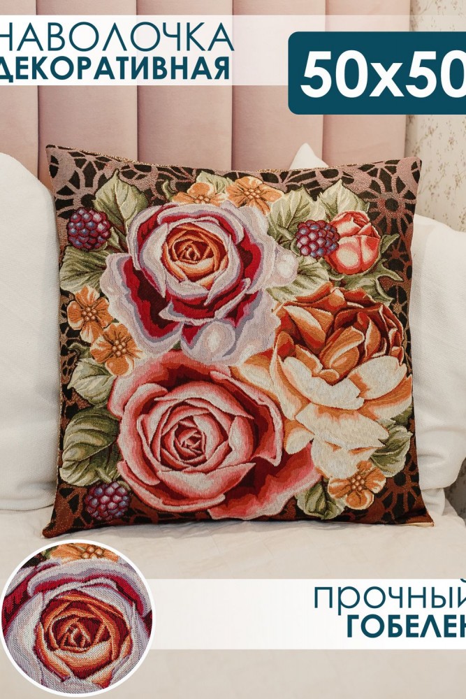 Наволочка декоративная 50х50 Розы - коричневый (Нл)