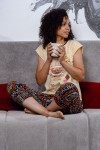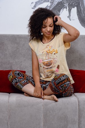 Уютная пижамка с оригинальным принтом "Доброе утро". Можно использовать как домашний костюм. Футболка со спущенным рукавом, бриджи свободного кроя, на манжете