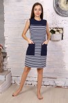 Платье из вискозы в полоску. Отделка - кокетка и накладные карманы из темно-синей ткани. Вырез горловины и пройма отделаны кантом