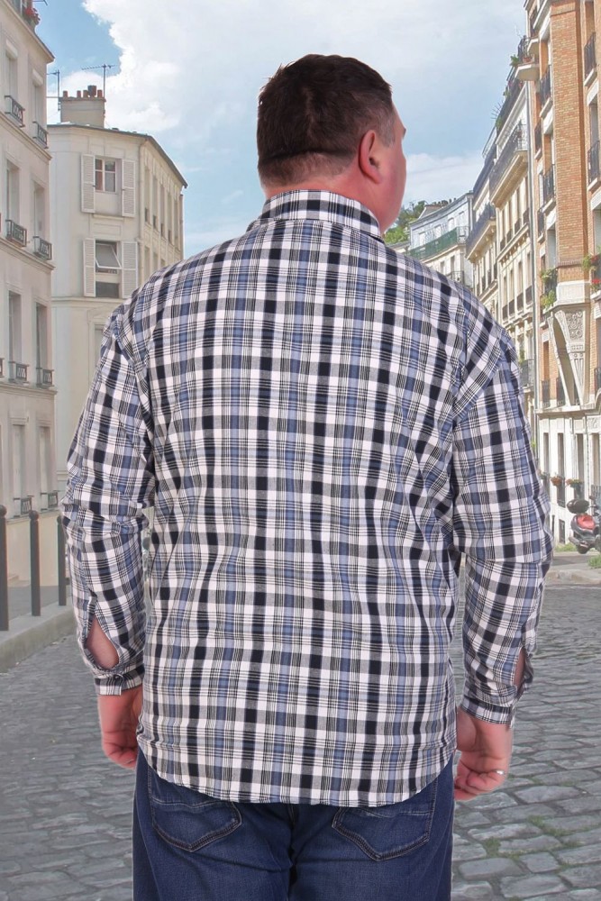 Мужская рубашка в клетку с длинным рукавом. Ткань шотландка 100% хлопок. Модель классического кроя дополнена двумя накладными карманами на груди плюс два клапана с пуговицей. Ворот проложен флизелином с отстрочкой. Данный товар по цвету не подбирается.