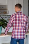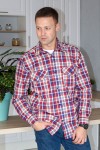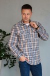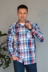 Мужская рубашка в клетку с длинным рукавом. Ткань шотландка 100% хлопок. Модель свободного кроя, дополнена двумя накладными карманами и клапанами с пуговицей. Планка на полочке цельнокроеная, застегивается на пуговицы. Плечо приспущено, рукав до запястья на манжете. Воротник на стойке, проложен флизелином с отстрочкой. Низ изделия застрачивается швом в подгибку при помощи специального приспособления. Внимание! Данный товар по цвету не подбирается.