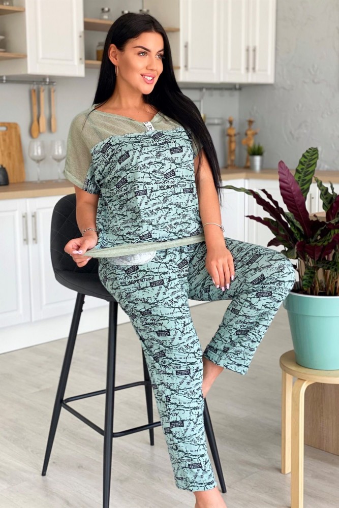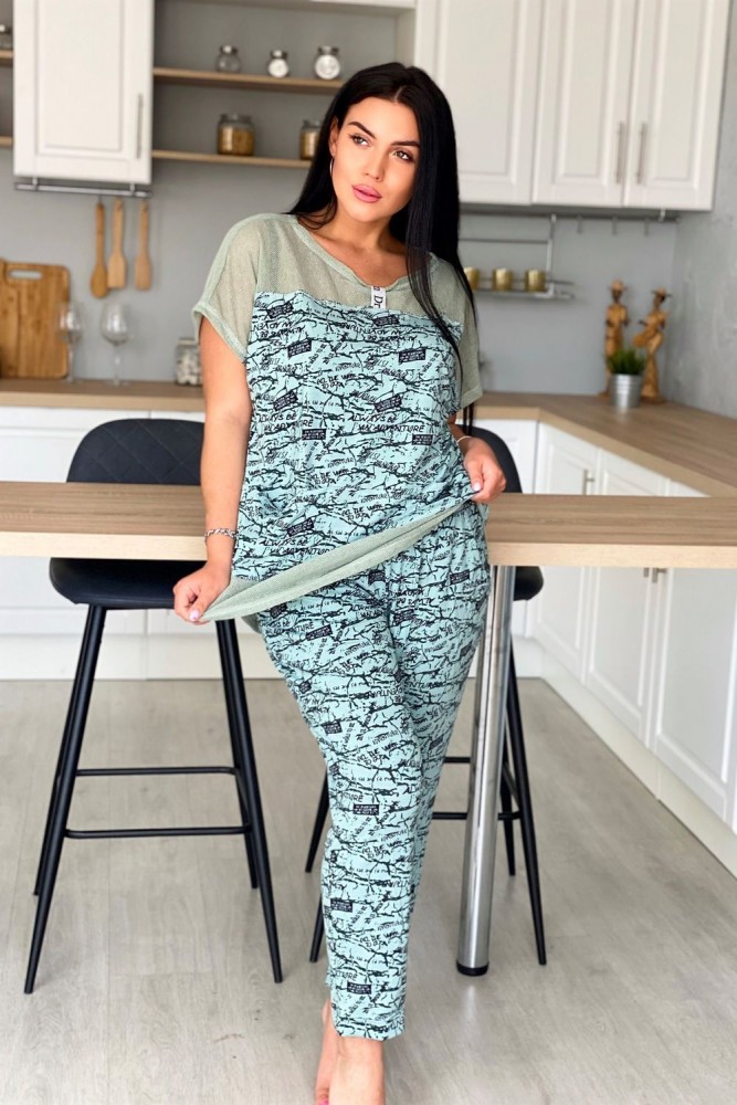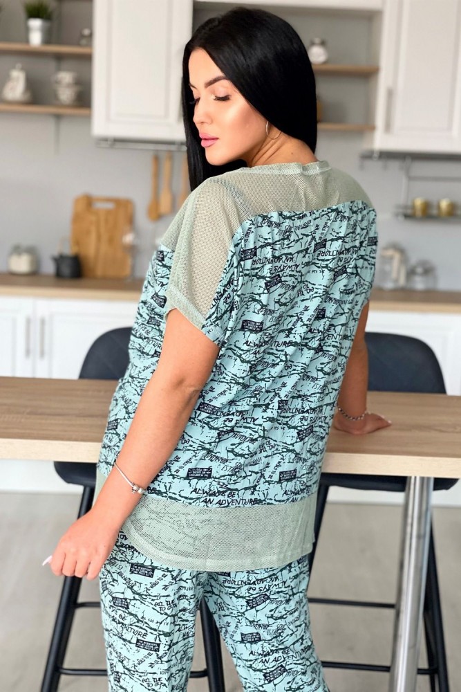 Туника женская прямого силуэта. Рукав цельнокроенный. Кокетка полочки и спинки, низ туники из оливковой хлопковой сетки. В среднем горизонтальном шве полочки два внутренних удобных кармана. В центре кокетка полочки собрана на серебряную тесьму.
