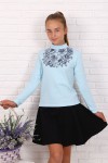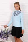 Школьная водолазка из высококачественного трикотажного полотна на хлопковой основе с добавлением эластана. Длинный рукав. Нарядность и романтичность изделию придает принт в виде цветов. Прекрасно будет смотреться в качестве школьной формы, как альтернатива классической блузке. Удобна в качестве повседневной одежды. Хорошо сохраняет цвет и форму при активной носке и после многократных стирок при 30 градусах. Синяя юбка на фото артикул 11594.